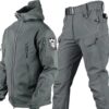 Men’s Plus Size Sporty Winter Jacket Suit Set Waterproof Hiking Hunting Clothes Windproof Softshell Coat Pant Fleece Autumn
